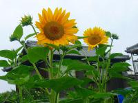 ほんで、精神的に(心が)しんどいと、身体は3倍位疲れますよね。 心配だけで、体が動けない位疲れる事もあるんですよ。私は、仕事辞めた秋に、お医者さんにストレスって言われたけど、起き上がれなかったです。寝返りするのも声が出る位痛かったです。1週間・・2週間・・イヤイヤ3ヶ月位ね! その年は、楽しみにしていた稲刈りも手伝えませんでした。 私は一人で、身体中が癌にやられているのかと思ったです。 〜〜〜〜〜〜〜〜 話は、変わります 〜〜〜〜〜〜〜〜〜 昔々、我が家では、チャボは放し飼いだったから、その辺りにいつも歩いていました。襲われる事は殆ど無かったのですが、牛が居なくなって2年目位に、繋がれている我が家の愛犬に1羽食べられたんですよ。 本当に馬鹿ですよね。 今までず〜っと、そういう環境だったのに・・・? 犬を繋いでいる場所もずっと同じだったのに・・・? ちょっと気を抜いて近づき過ぎたんでしょうね。 犬だって、ちゃんと餌もらっているのにね。 ほんで、いつも一緒に居て仲良しになっていたと思うのにね? 狩の練習なら、優しく噛めばいいのになって思いました。 動物の世界には、私には計り知れない事がいっぱいあります。 〜〜〜〜〜〜〜〜またまた、話が変わります〜〜〜〜〜〜〜 稲の苗は、元気に大きくなっているでしょう! そして緑が濃くなっている事と思います。 我が家も5月初めに植えた稲は、周りの田んぼのお姉さんお兄さんみたいに大きくなっていて、頼もしいです。今植えられている苗は、赤ん坊みたいで弱々しく見えます。 我が家もこの土曜日にヒノヒカリを植えたら、田植えは全て終わります。立派な百姓さんから見れば、遊び事のように見えますが、息子たちは一生懸命に頑張っています。その頑張りが報われないかもしれませんが、それも全て吸収して身に付けてくれたらいいなあって、私は思っています。 讃岐は、もう暑いアツイ夏です! 暑さに参っています。 山形は、涼しくて、もうホタルの時季ですか? 私は、昨夜海ホタルを見に行ってきました。三日月の夜かその前後しか見られません。 田んぼの普通のホタルは6月初め頃でした。 少しも休まず、自然は移り変わっています。その折々に、新しい感動をいっぱい与えてくれます。 菅野さんも、自分の心が納得できるように頑張ってくださいね。腰痛は完治しておられるのでしょう? 今回は、元気な花送ります! 亡き夫に、「お母さんは、いつも家のひまわりみたいやな!」って、言われていました。・・? 私は心の中で、ハッパ掛けられてるな(期待されているんだな)って思っていました・・・とんとん! |