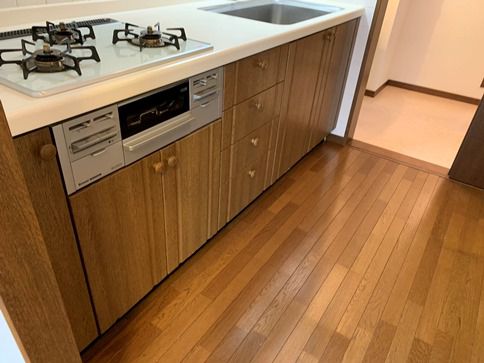 システムキッチンは、ガスコンロからIHクッキングヒーターに交換。観音開きだった