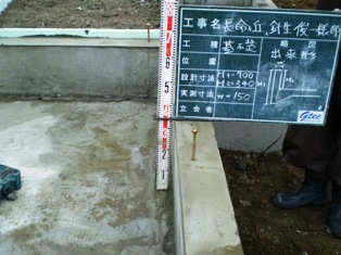 基礎が図面どおりに施工されているかの検査写真
