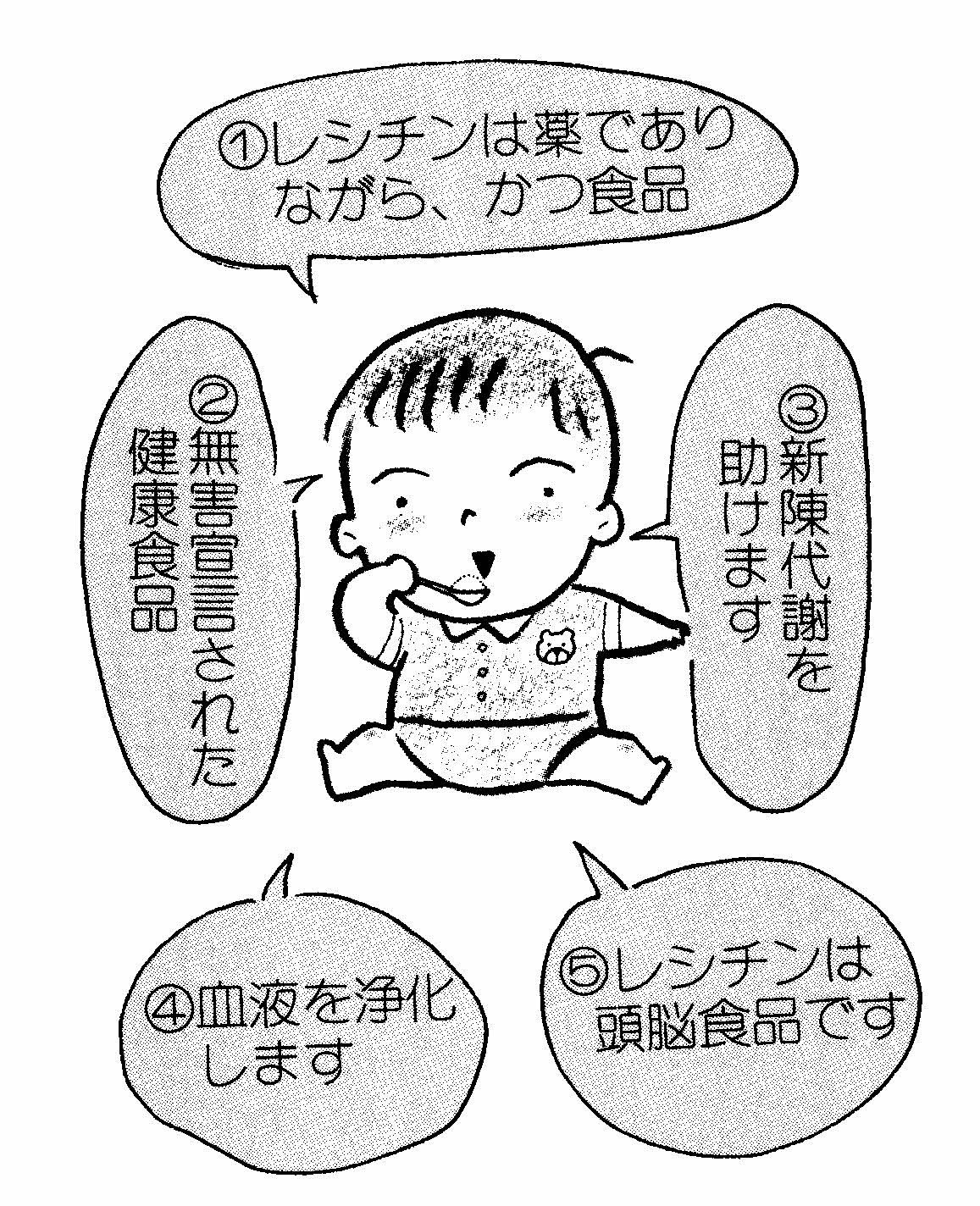 レシチソは別名頭脳食品ともいわれ、とくに成長期の子どもにレシチソをとらせると、IQが二五パーセントアップすると米国の学会で報告されています。