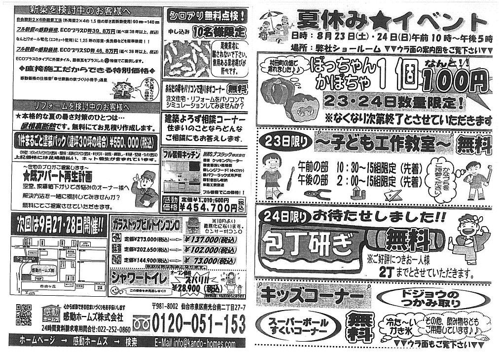 毎月恒例の弊社ショウルームの8月イベントお知らせ