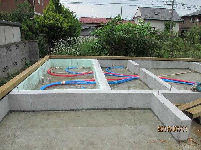ベタ基礎完了、給排水設備取付