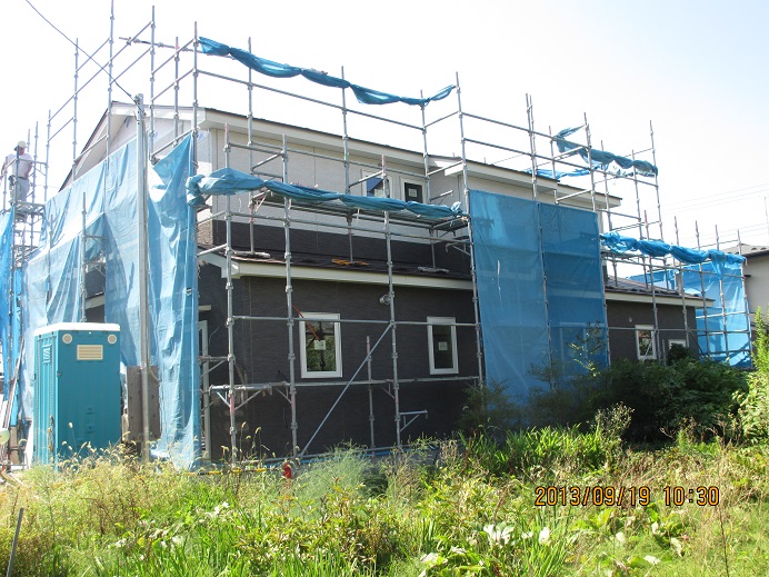 外壁16ミリ施工中