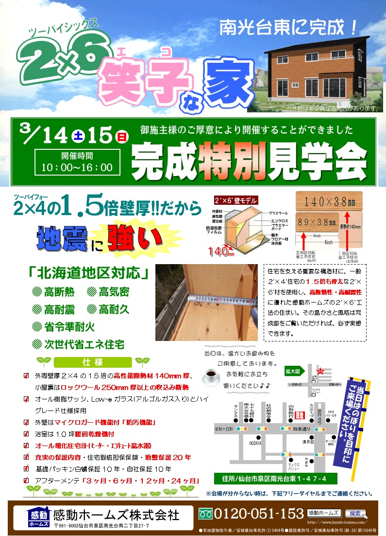 【2×6】仙台市泉区S様邸 「完成特別見学会開催」