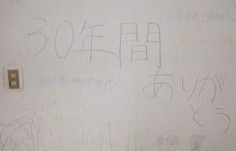 【解体前、お孫さんたちから部屋の壁に「ありがとう」のメッセージが書いてありました】