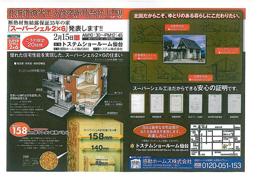 2/15(日)10:30~12:45 トステム仙台ショールームにおきまして