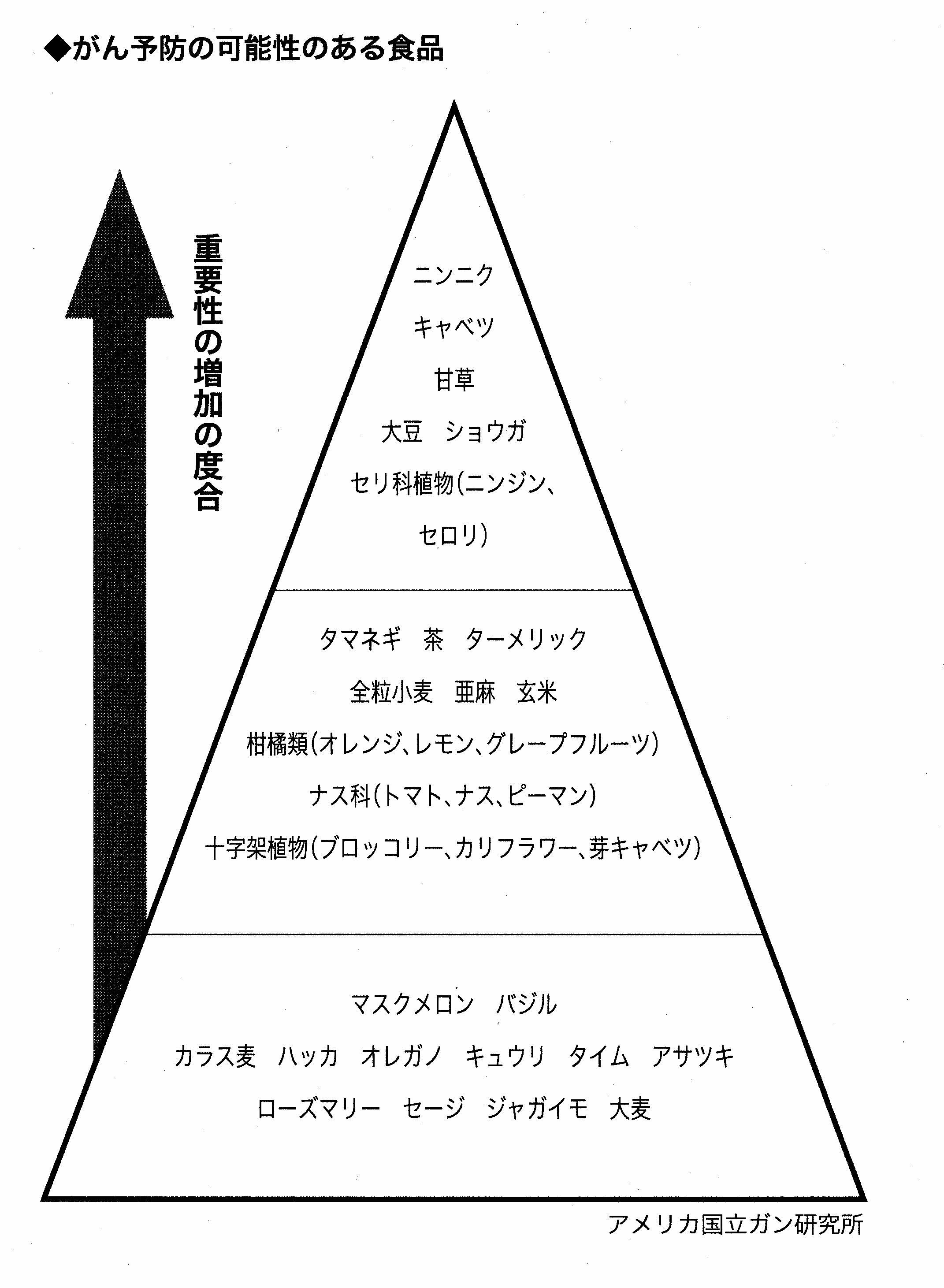 米国の国立ガン研究所は「ガン予防効果度ピラミット」を発表した。