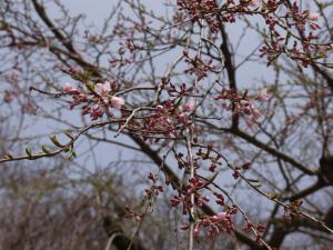 烏帽子山の桜の様子がなんだかおかしいです。木によっては5分咲きのものもあれば、まだつぼみのもの、2〜3分咲きくらいのもの。