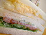 城西のCOOP内にあるベーカリー『バースディ』の野菜サンド(190円)。パンはスタンダードな食パンを使って、耳なし厚さ1cm強。卵の白身はわりと粗めに刻んであるので、弾力のある食感です。その他ツナなど、サンドイッチは3種類位。