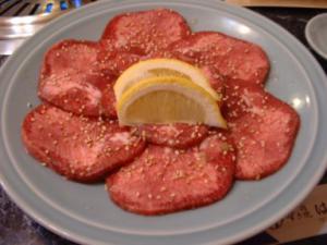 焼肉橋本へ行く、念のため予約をしておくと予約席に箸、サラ、オシボリなどが用意してあった。まず、タン塩 両面を焼いてレモンを絞って喰う。うまい!