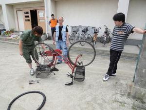 ワシらのチーム名が思い浮かんだ、被災地で自転車修理に困っている人に少しでも役立てるボランティアグループ「復興支援・自転車なおし隊!」(写真はパンク修理セットの進呈)あまりの暑さに今回よりTシャツ、半ズ ...もっと詳しく