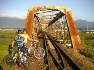 3人でマウンテンバイクでゆっくりと2時間白鷹町と長井市の川沿いをぐるっと周る。写真はフラワー長井線、白鷹地区の、日本で最初に出来た長大鉄橋「最上川橋梁」ということです。見た目は頑丈だし、しっかりした作 ...もっと詳しく