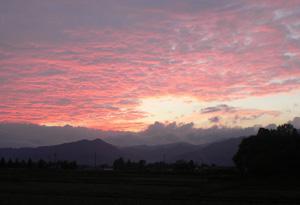なにげなく西の空を見たら夕焼け雲が赤い、気持ち悪いので一応撮っておくか。写真を撮ったときには最初見たときより地味になってしまった。