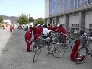 当地区の自転車店が中学の自転車点検に行きブレーキの効きが悪かったりライトがつかない自転車などを調整修理した。点検終了後、先生に「自転車店のみなさん子供たちの前にどうぞ!」代表の子が「悪いところを直して ...もっと詳しく