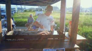 イカを焼く、しんぶん副委員長のめがね魚屋さん