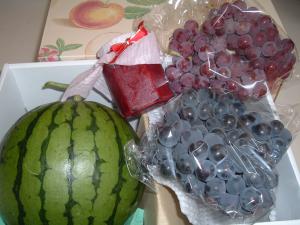 ぶどう(デラ) <8月>すもも(貴陽)・桃・梨(幸水)・ プルーン <9月>すもも(秋姫)・ぶどう(ピオーネ)・ 梨(豊水)・西洋なし(オーロラ) |