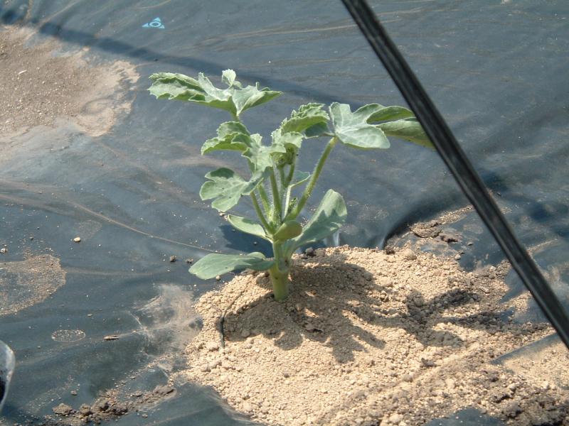 ▼西瓜の苗を植えたところです。