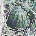 最盛期を迎えます、笹原さんの尾花沢すいか。日焼け防止にわらをかぶってます。