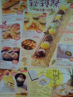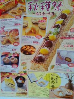 恵みの秋のおいしさ満載! 4日間限りの特別価格! 秋穫祭だけの特別価格! 4日間のみ販売 ☆ご予約承り中! ☆ロングマロンパイ 約42cm・約8人分の超ロングパイ 1本 1260円 秋穫祭だけの特別価格! 4日間のみ販売 ☆小豆ポテトパイ この秋おすすめのパイ 食べ逃しなく! 1本 800円 秋穫祭だけの特別価格! 4日間のみ販売 ☆栗きんとん 贅をつくした栗の風味。 1個 130円 ☆アップルガレット 通常価格120円のところ秋穫祭特別価格! 100円 ☆栗大福 通常価格160円のところ秋穫祭特別価格! 120円 ☆窯出しポテト 通常価格160円のところ秋穫祭特別価格! 130円 ☆ご予約承り中! お電話でのご予約でも大丈夫です。 お待ちいたしております。 |