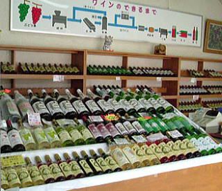 国道13号線沿いにある醸造元、直営店の売店の中です。当社の製品の全てがおいてあります。一般の小売店様で買えないワインやHPに掲載していないワインもいくつかあります。