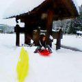 こまの里でそり遊びができます。外国の子供さんもすべっていました。