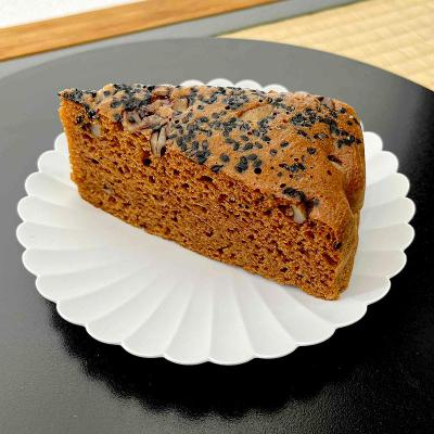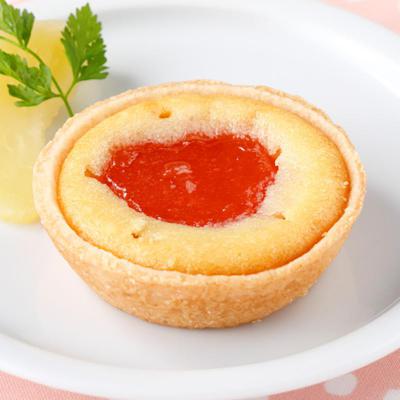 タルト生地にスポンジをのせ、シークヮーサージャムをトッピングしました。