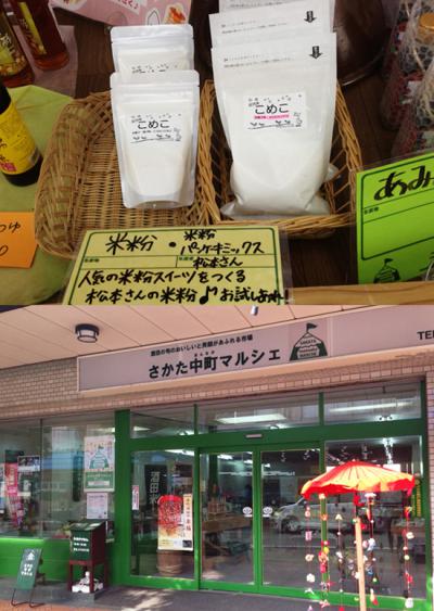 ▶扱っている商品名 ハーフタイム 庄内米こめこ(庄内産はえぬき・200メッシュ) 200g/200円 ハーフタイム 庄内米こめこ(庄内産はえぬき・400メッシュお菓子用) 200g/230円 ▶店舗情報 住所/酒田市中町1-8-7(地図はコチラ) 営業時間/10:00〜18:00 定休日/火曜日 電話番号/0234-43-1688 ホームページ/http://www3.ic-net.or.jp/~mannaka/ ▶ハーフタイム松本さんの米粉(料理用・お菓子用)を扱っています。 他に米粉プリン、米粉シフォン、米粉のクッキーなどもあります。 お店では他にもつや姫使用の胡麻せんべい(永成食品)、米粉入り 庄内豚餃子(JA庄内みどり)などもあります。 |