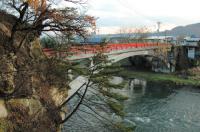 霊峰月山と朝日連峰を源とする寒河江川。寒河江市の北西、白岩に近い断崖にあり、文政10(1827)年に造られた橋。その形があたかも竜に臥している姿に似ていたことから臥龍橋といわれている。