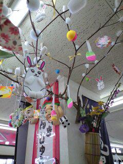 小正月に だんご木を さげます。