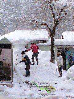 かまくら前と 丸田屋前には おっきな 雪灯籠が できていますよ♪