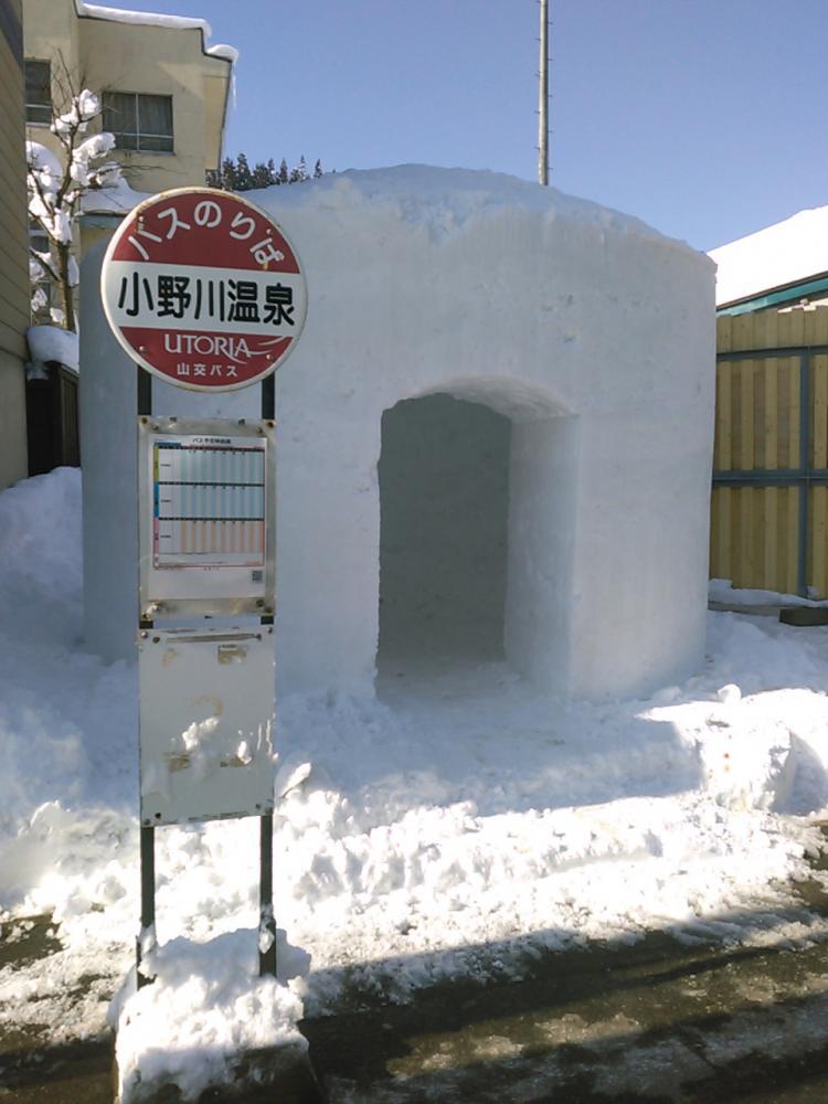 小野川温泉 バス停に かまくらが 完成しました!