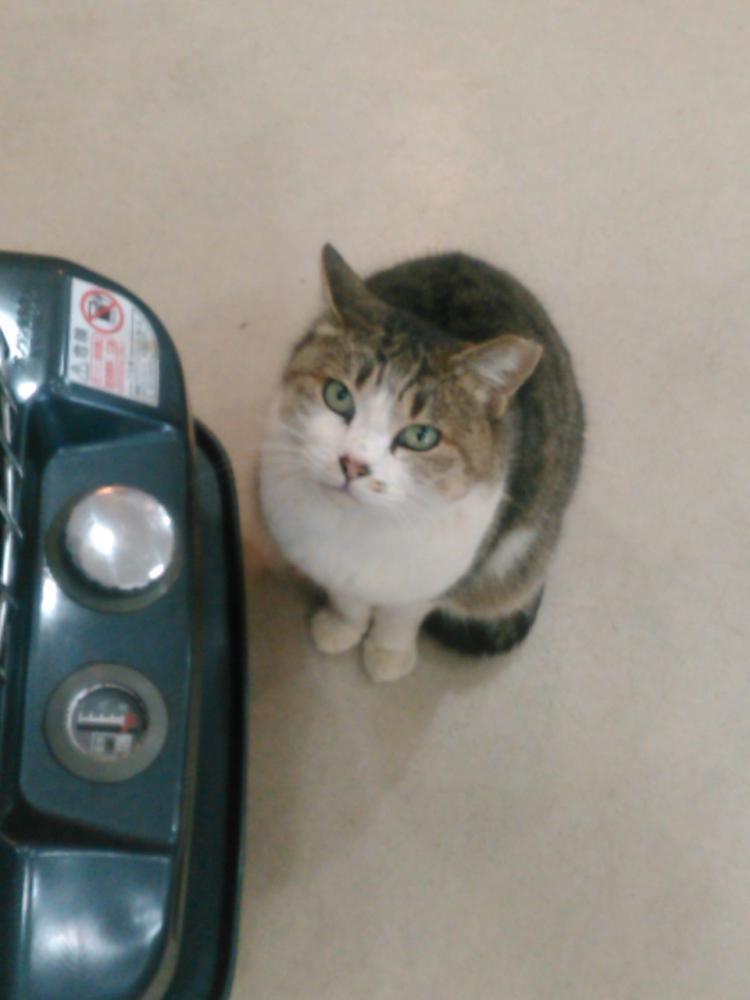 地域ねこの『おかあちゃん』店内のストーブに あたってます(^^)