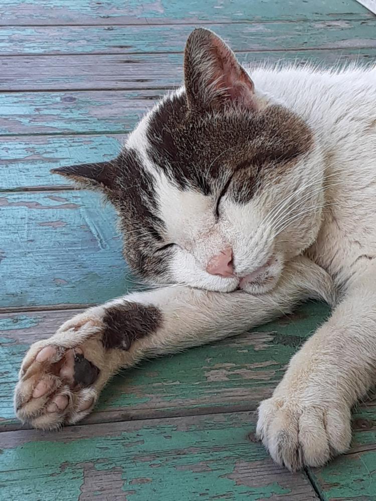 気持ち良さげに 寝ている 地域ねこの みみたろう。