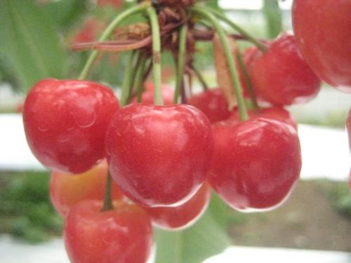 さくらんぼ畑では、佐藤錦が大勢を占める中で、重そうにたくさん実を結んだ紅秀峰が目立ちました。紅秀峰にとっては、佐藤錦が最高の相性の交配樹ということで