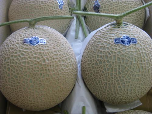 「富士」これに関連して、順番に山・白・雪というわけです。東京大田市場のメロン専門の仲卸(株)タカハシさんは、僕が東京ハヤシフルーツで修行させていただいた時に保証人になってくださった恩人です。メロンの目利きとしては、日本有数の人物で、いつも安心して注文させてもらいます。珍しく、山・白の二つの等級が揃ったのを撮りました。どちらが、どちらか分かりますか?