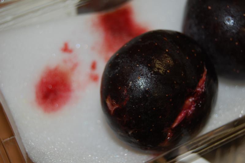 テレビ放映当日から、問い合わせや「フルーツGetメール」をたくさん頂戴していましたので、早速発送をと思いましたが、果汁が出て赤く染まっている状況でした。