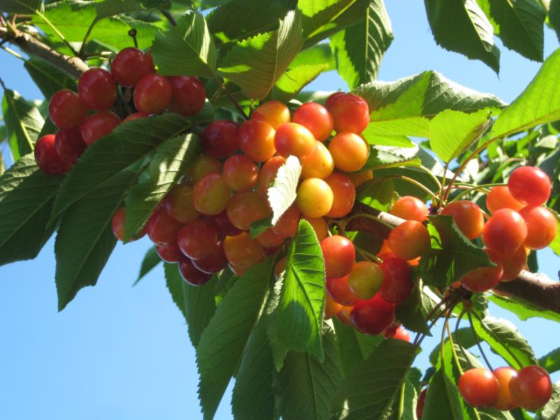 さくらんぼ畑では、佐藤錦が大勢を占める中で、重そうにたくさん実を結んだ紅秀峰が目立ちました。紅秀峰にとっては、佐藤錦が最高の相性の交配樹ということで