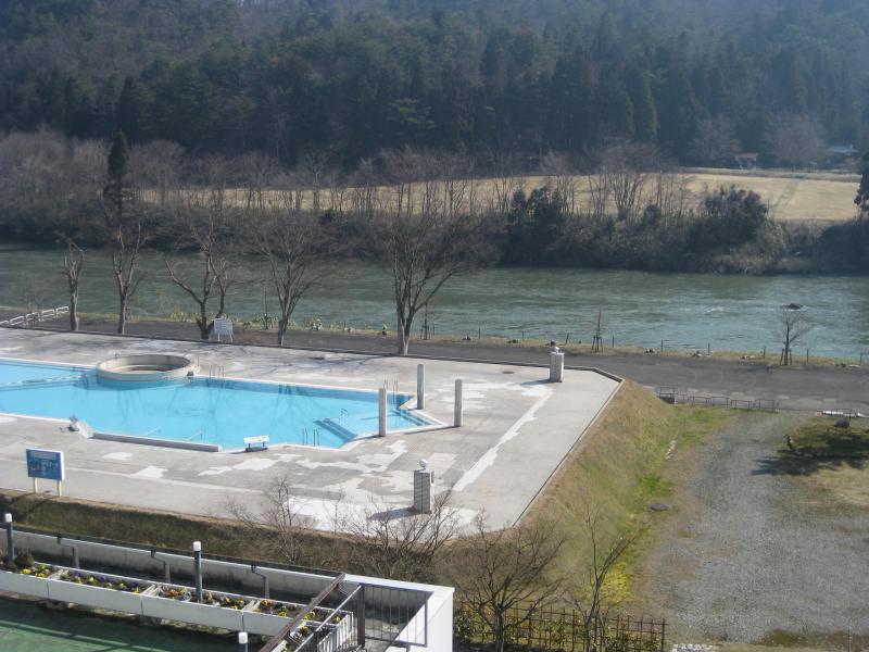 地元の皆さんが集うことで、宿泊客にも癒しの空間を演出するクアハウス碁点に、家族5人で一泊旅行に行ってきました。客室からは、最上川とSPAプールが望めます。