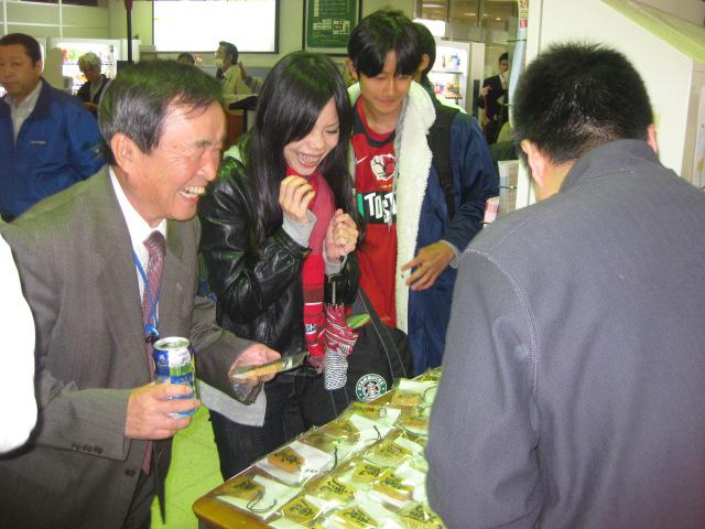 JR天童駅にて50個限定「天童のお土産 将棋駒」を新幹線の到着時間に合わせて