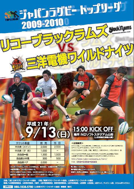 注目は、三洋の元NZオールブラックスのトニーブラウンとリコーの元豪ワラビーズのスティーブンラーカムが対決するゲームを山形で生で見られるということです。来月、日本で初めて、ニュージーランド対オーストラリアの定期戦ブレディスローカップが行われますが、最高のチケットが7万円ですから、明日は本当にチャンスです。