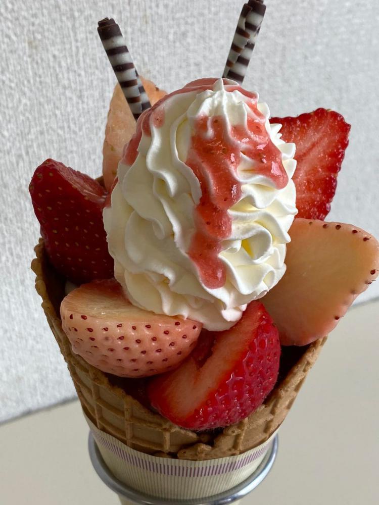 赤いいちごのあまおう[画像]と白いいちごの淡雪[画像]をお楽しみ頂ける人気のパフェです♪