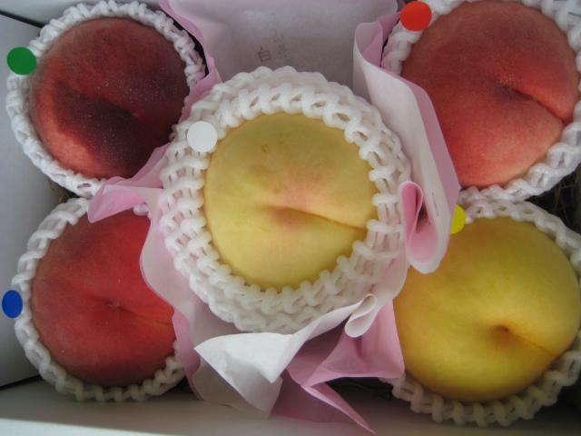 主役と言えるこの桃が、たとえ1個2000円でも、欠くことはできないと、待ちました。箱詰めしてみて、このセットの迫力は想像以上でした。
