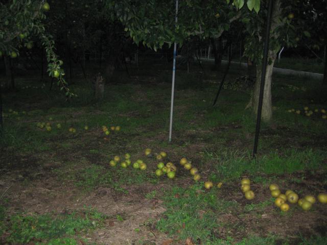 軸が太く硬いので、柔軟性がないのですね。収穫期は10月中旬くらいですから、今の時期に落下したものは、ジュースなどの加工品にも使えません。