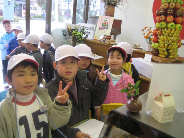 「生活科商店調べ」ということで、各グループ3〜4名毎にご来店くださいました。トップバッターで、常連の“ちひろちゃん”のグループがやって来ました。「フルーツは何種類ありますか?」「どうしてフルーツポンチッチを作ったのですか?」など、礼儀正しく質問してくれました。フルーツについての疑問があるときは、またのご来店お待ちしてます。