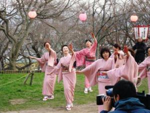 大鳥居をま〜すぐ下って徒歩10分位で着きます。 散歩するには、ちょうど良い距離です。 写真は、当館の部屋から見える桜です。 昼の桜もきれいですが、夜、ボンボリの付いた、夜桜を 部屋から見るのも、またきれいですよ。 |