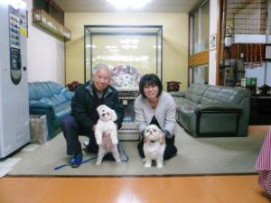 ハッピー君と、チャーミーちゃんです。 ちっやくてかわいいわんちゃんでした。 当館の「スピア」が一番でぶっちょです・・・(^_^;) けさ、「スピア」がハッピー君に近づいたら、「わん」と吠えられ 逃げて来ました。臆病者なんです。 U様 御来館ありがとうございました。また、ハッピー君とチャーミーちゃんを 連れて、遊びにお越し下さいませ。お待ち申し上げます。 ...もっと詳しく |