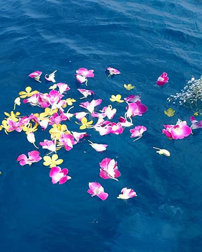 (写真は故人が好きだった花々と一緒に海へ眠る散骨風景=インタ-ネット上に公開のイメ-ジ写真から)