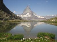 写真はスイスでも最も印象深いマッターホルンです。天気が良ければ手前に見える湖に通称「逆さマッターホルン」が見えます。実はこの後、我が家の犬がこの湖に飛び込み、生まれて初めて水泳(犬かき)を経験することになるのでした。
