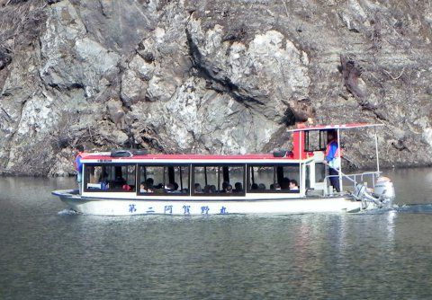 旅客船~全天候型屋形船~で三淵渓谷参拝と長井ダム・百秋湖遊覧