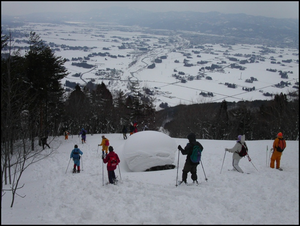 冬の里山から野川や散居村を望むスノートレッキング(雪山散策)を楽しんでみませんか。